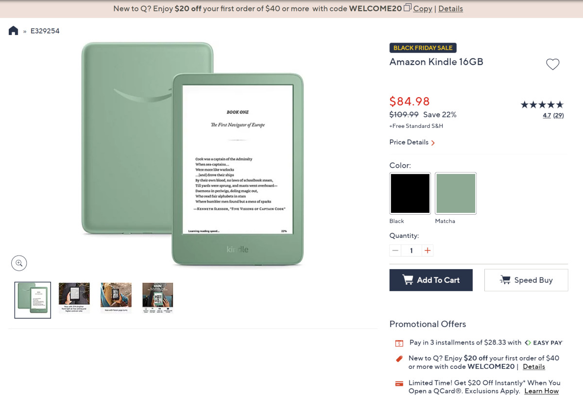 QVC has a few Kindles on sale as part of their Black Friday Sales, and one of the deals sets a new all-time low price for one of the Kindle models, but it does require using a coupon code that only works with new QVC accounts.