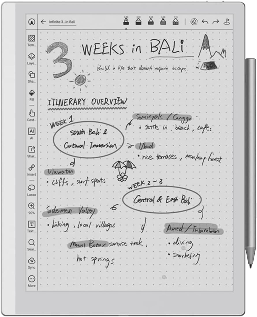 As the name implies, the Boox Go 10.3 has a 10.3″ E Ink screen, and it’s one of the few black and white eNotes with a 300 ppi screen. I reviewed the 1st gen Boox Go 10.3 and thought it had one of the best screens I’ve seen. This newer version is 90% the same so I wouldn’t expect that to change. The one thing I do miss on the Go models is the lack of BSR, so screen refreshing isn’t as fast and smooth as some of Onyx’s other models, but battery life is better without it.